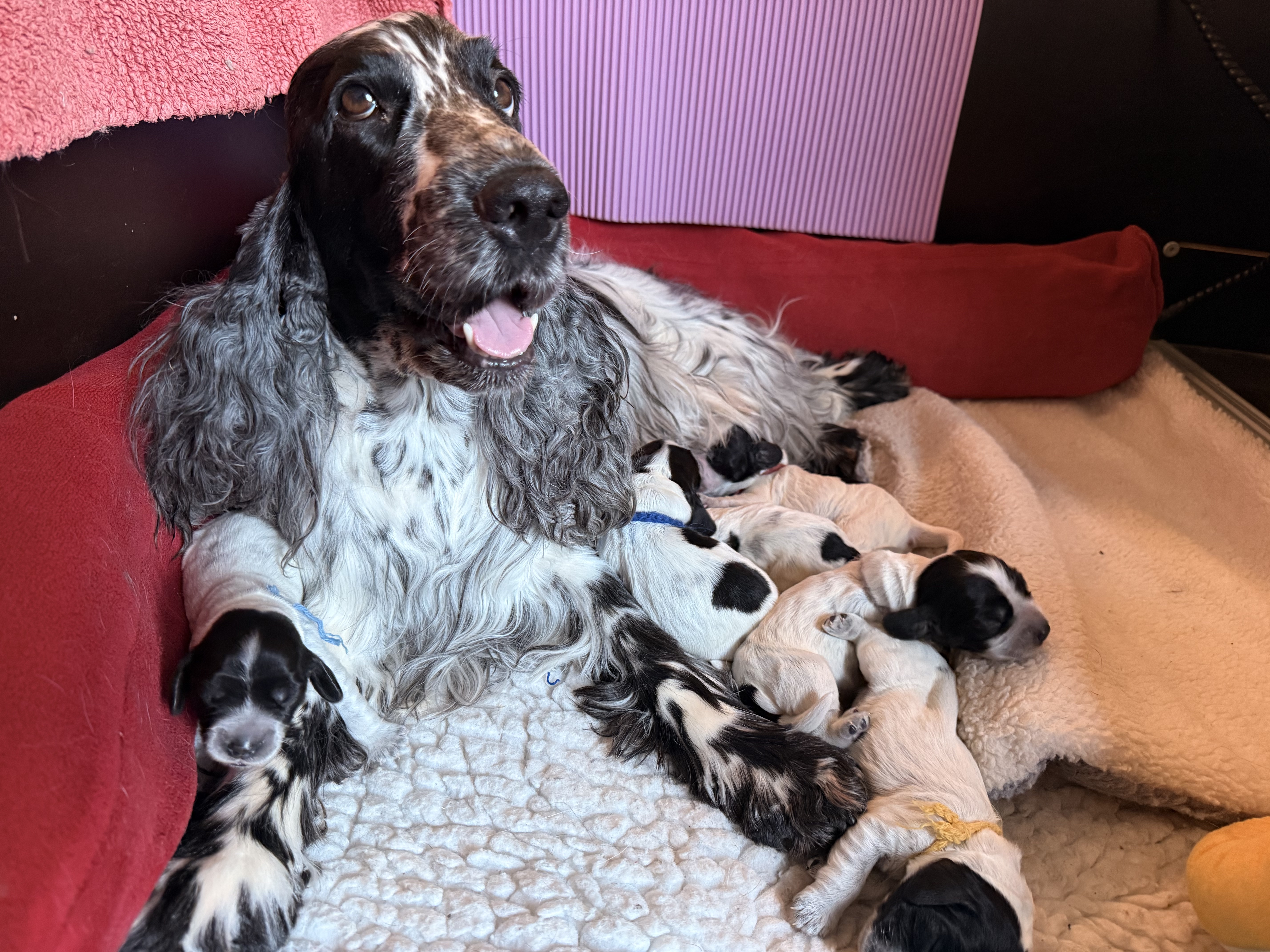 Wir sind überglücklich über die 7 Zwerge! Es sind 3 Rüden und 4 Hündinnen. Wir freuen uns auf die kommenden Wochen.